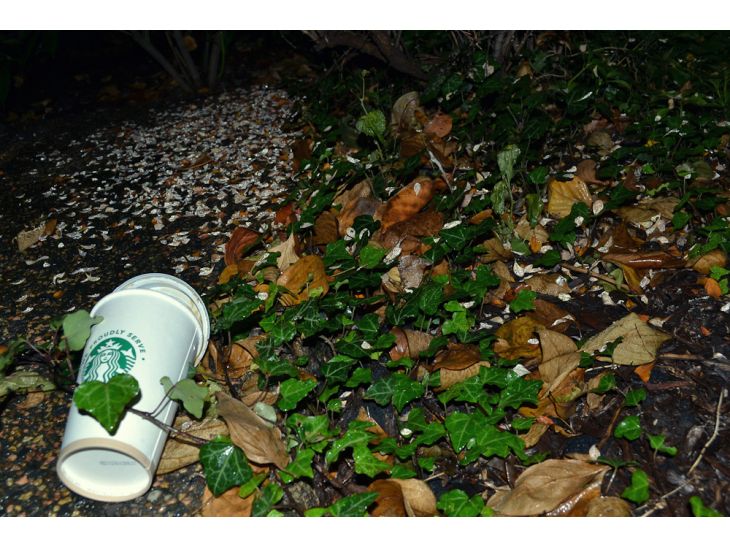 Each photo showcases some of the most common trash in the United States, and each caption shows the environmental damage that goes along with the type of trash in the photos. When viewing these images, I would like all Americans to associate the corporate products they buy – and then throw away – as having an effect on the environment. Some brand labels are intentionally out of focus or not the most easily viewed, as this shows just how commonplace the products are: General shape or color scheme can make many items recognizable. All of the items photographed here were found in trash and waste bins around Washington, D.C.